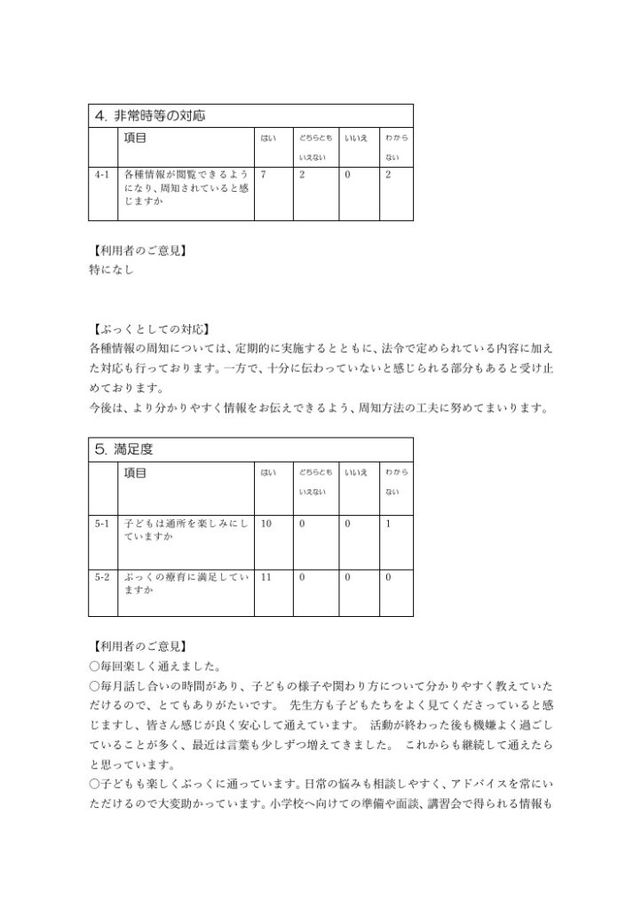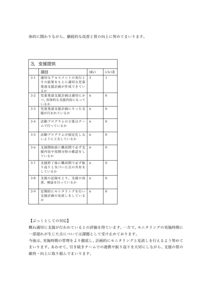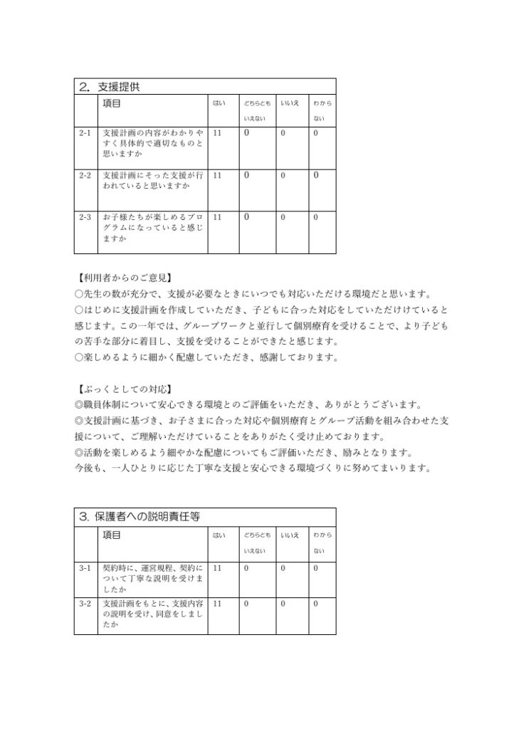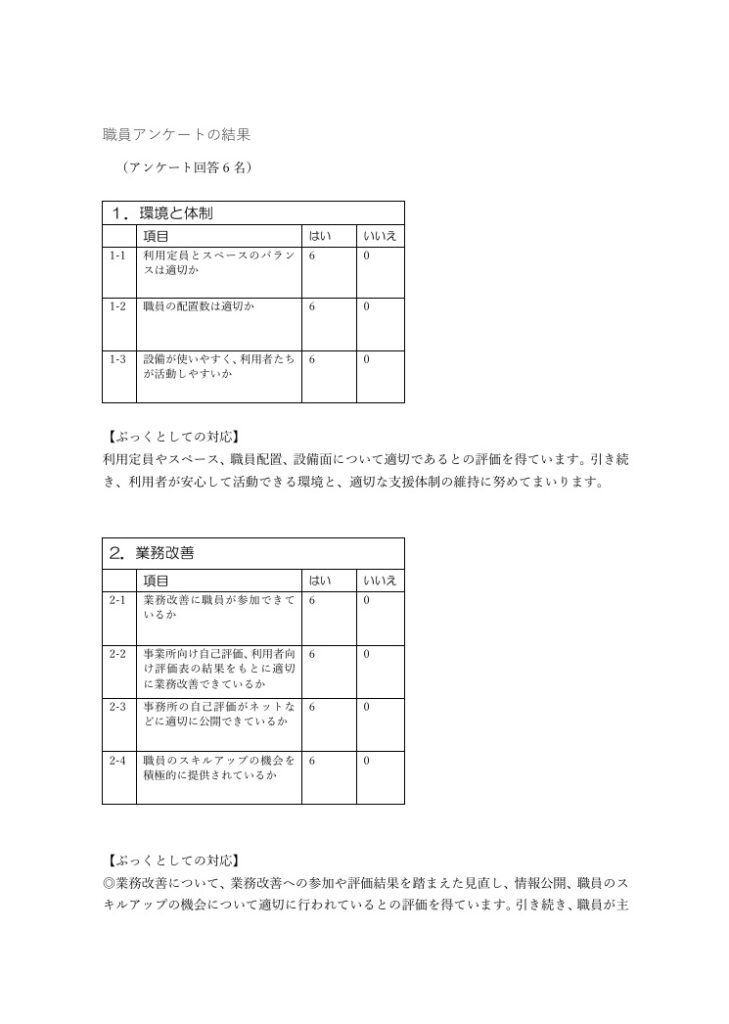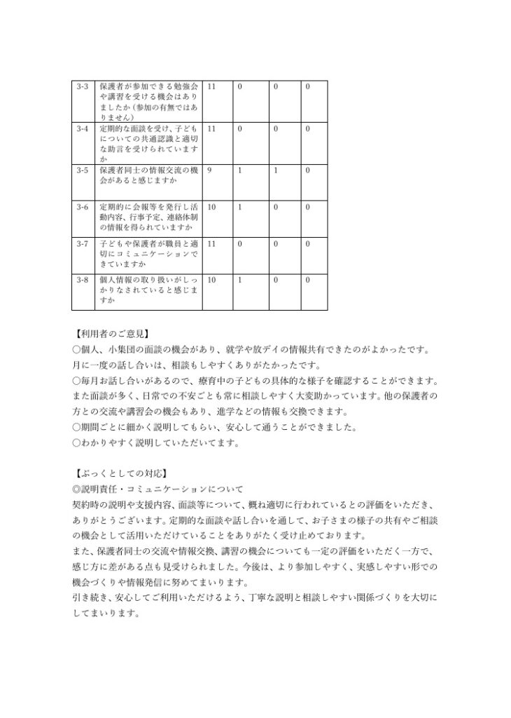 2025 年度事業所自己評価アンケート利用者及び職員の結果公表及び改善方針の公表